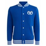 Diseño tipo varsity, con puños, cuello y pretina con franjas.