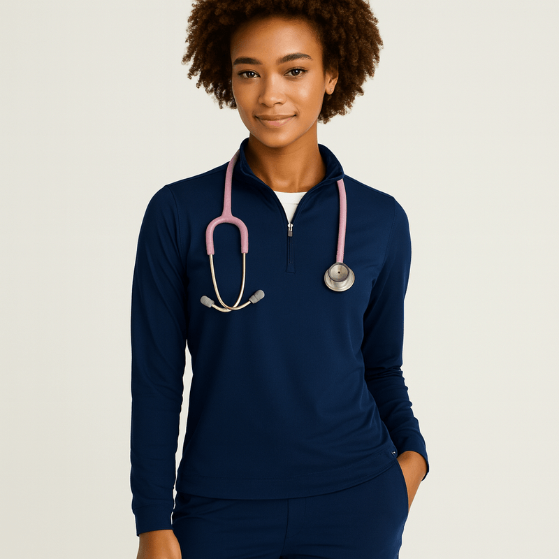 El Suéter Clínico Half-Zip Skechers es una prenda ligera, flexible y de manga larga, diseñada para brindar comodidad durante toda la jornada. Su media cremallera permite un ajuste práctico, mientras que su diseño moderno y profesional funciona perfectamente como una capa adicional sobre el uniforme sin perder movilidad ni estilo.